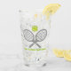 Tennis racket and ball grey and green glass. It features grey crossed rackets, a green tennis ball and your text in green. You can personalise it and add your text or monogram, name or your message.