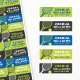 Tennis racket and ball waterproof property labels in dark grey, green and blue with customisable name and telephone number. All colours are customisable. Great for labelling your belongings