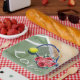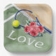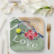 Tennis racket and ball with word LOVE on court Paper Plate