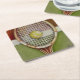 Tennis Racket with Ball Laying on Court Square Paper Coaster