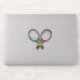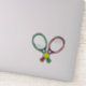 This is a colourful graphic red and green tennis rackets and tennis ball of classic colour.