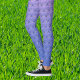 These tennis-patterned leggings have a background colouring of blue merging through lilac into pink. The fun repeating pattern is created with crossed blue-rimmed tennis rackets and yellow tennis balls, on a gradient ombre background.