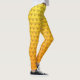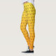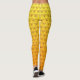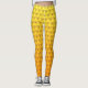 These are fun tennis-patterned leggings with a background in orange merging into yellow. The repeating pattern is created with crossed red-rimmed tennis rackets and yellow tennis balls, on an ombre background.