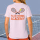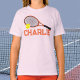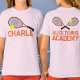 Bright tennis racket and ball with your own name underneath graphic on the front and your club or other words on the reverse or personalise with your own saying. Original graphic art and design by Sarah Trett for www.mylittleeden.com on Zazzle.