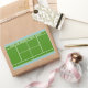 Tennis-themed gift stickers, party favour labels and envelope seals featuring tennis court on pink background. Edit text to personalise.