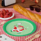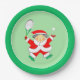 Fun tennis Christmas holiday party or tournament event plates featuring Mrs. Claus tennis player.