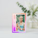 Commemorate your tennis tournament doubles results with this custom trading card. Upload your own tennis player photos to the front and back, and edit the text to enter your name and also your doubles tennis team name, such as Simpson/Johnson, for example. You can also edit the text to enter the name of your tennis tournament, as well as your win/loss record and which place you finished. The front of the card's border is dazzling pink/purple/red rays. The back of the card has a blue tennis court background with tennis balls and a tennis racket.