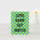 A playful anniversary for a couple who love tennis! Love, game, set, match. Yellow tennis balls on a vibrant blue background. Gender neutral. The message inside can be personalised with a name or message of your choosing.