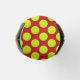 Tennis balls create a bright polka dot pattern on a red background on both the front and the back of this fun can cooler for tennis fans. On the front, tennis rackets are also used in a complementary pattern on a green background. Finally, there is a yellow stripe for you to personalise with a name or other text.