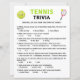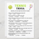 Tennis Trivia Game's answer key: 1. A, 2. A, 3. C, 4. C, 5. C, 6. B, 7. B, 8. A, 9. A, 10. B, 11. A, 12. A, 13. C, 14. B, 15. C, 16. B, 17. B, 18. A.