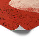 A simple abstract in black, white and red orange. One large curvy shape goes from top to bottom over a red-orange background. Straight lines intersect on the large shape while 3 black accents adorn the right side and then repeat at bottom.
