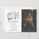 Tent, Lantern and Woodland Sketch Camping Save the Date Photo Wedding Announcement in Grey and White.