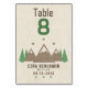 Green, ivory, and brown tent canvas style camping Bar Mitzvah personalised table number card. This camping themed Bar Mitzvah table number card is perfect for a Bar Mitzvah party that you plan to host at a campground (campers can stay overnight for the party). Or it would work for a campout cookout style outdoor party at a campground or park. This design features a canvas background that is much like you'd see a camping tent made out of. It also features natural colours of green, brown, and ivory or cream. There are icons of mountains and trees and accents of arrows and stars. This camping Bar Mitzvah table number card also works for a more glamourous glamping themed party. Great for a fan of Boy Scouts. The party doesn't have to be outdoors either, it can just be a wonderful indoor theme.