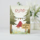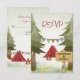 Unique Camping Woodland Wedding RSVP Card with Tents, Campfire, Trees and flowers.