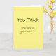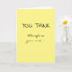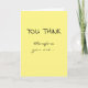 Celebrate a major professional achievement of your colleague, friend, or loved one with this card! The message is a play on the philosopher René Descartes' famous phrase "Je pense, donc je suis [I think, therefore I am]" ("cogito ergo sum"). The front of the card reads: "YOU THINK," followed by "therefore you are..." Opening the card, the wording continues: "TENURED! Congratulations!" The front of the card is yellow, and the message appears in black lettering; customise with other colours if you wish. Perfect for anyone upon getting academic tenure!