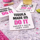 Make your celebration unforgettable with this customizable “Tequila Made Us Do It” design—perfect for bachelorette parties, girls’ trips, and destination weekends. Featuring bold, modern typography with a vibrant pop of pink, this design adds a fun, personalized touch with the bride’s name, location, and year. Whether you’re celebrating in Cabo or anywhere your party takes you, this piece brings humor, style, and a cohesive vibe to your event. Ideal for party favors, drinkware, and accessories, it’s the perfect way to commemorate a weekend you’ll never forget.