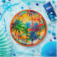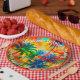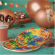 The perfect paper plate for your tropical, island, tiki themed party. You can customise the optional text for any occasion and choose any colour you like for the border (shown in orange).
