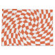 Modern bohemian Teracotta colour theme wedding party products. Evergreen retro trendy warped checks design, warped chequered paper plates in beautiful elegant and chic Teracotta and white colour.