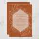 Gorgeous colour and geometric design make this invitation stunning. This design features a monochromatic colour scheme in beautiful terra cotta shades, a lovely floral botanical line drawn sketch, and custom typography with a geometric border.