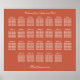 Terracotta 26 Table Wedding Seating Chart Poster, please personalise the names of the couple and the names of the guests along with any of the other text that you may wish to personalise. A stylish seating chart poster featuring elegant white text on a lovely terracotta colour background.