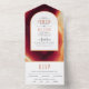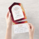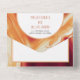 Terracotta agate slice modern geode all in one fall wedding invitation. A modern and elegant wedding design with a slice of red agate and a white frame with your wording. It includes a tear off detachable RSVP.