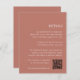 An all-purpose enclosure card for your wedding invitations, this petite Details card provides three custom text fields for your wedding details, website, and a QR code for RSVPs or additional information. A simple typography based design with a minimalist feel, featuring classic white lettering on an earthy desert terracotta background.