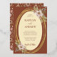 Terracotta and Gold Foil Elegant Boho Floral Wedding Invitation. This wedding invitation has a boho chic style with a rustic and elegant feel. The terracotta and gold colour palette creates a warm, earthy, and sophisticated vibe. Watercolor floral accents add a soft, romantic touch with hints of greenery and neutral-toned blooms. The use of modern calligraphy and serif fonts blends traditional and contemporary elements beautifully. Overall, the design feels whimsical, organic, and timeless, perfect for an outdoor or garden wedding.