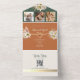 Celebrate your love with this rustic terracotta orange and olive green boho wedding all-in-one invitation. Featuring elegant floral accents, a golden heart detail, and a QR code for RSVP. Perfect for autumn weddings, this eco-friendly design is both charming and convenient.