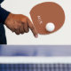 This modern ping pong paddle design features a boho terracotta background, with your initials in bold white text for a look that is simple and stylish, yet professional.