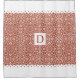 White and terracotta damask pattern with white scalloped borders and monogram shower curtain. On the upper and the bottom parts of the curtain there are white bands with scalloped edges while in the centre there is your monogram in clay colour in a white frame. You can personalise it with your name.