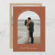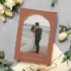 Beautiful and elegant photo thank you card to send to your wedding guests in terracotta and tan. Double sided wedding thank you card with two photos, one in an arch shaped frame with LOVE & THANKS written in a curve. Terracotta wedding thank you card with your names in a modern tan brush script. Grey and white photo thank you cards for the newly weds. Add your own personal thank you message to the back of the double-side photo thank you card.