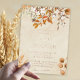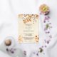 Modern bohemian style wedding design featuring watercolor fall leaves in earthy tones like rust brown, burnt orange and terracotta. The text can easily be personalized for a unique one of a kind design for your special day.