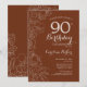 Terracotta Boho 90th Birthday Party Invitation. Minimalist modern design featuring botanical floral outline drawings accents and typography script font. Simple trendy invite card perfect for a stylish female bday celebration. Can be customized to any age. Printed Zazzle invitations or instant download digital printable template.