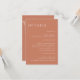 This is Modern Terracotta Wedding Insert card template, that will add a touch of elegance to your Wedding party decor, and rust and desert shades will be great for Fall Wedding. All text is editable, just click on 'Personalise this template' and then to 'Customise further'. Matching items including Invitation card and RSVP card also available.