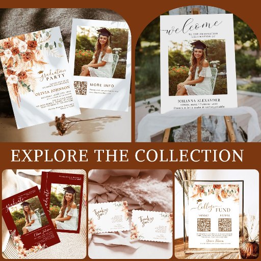 Make it easy for guests to help the grad — and look gorgeous doing it. This Terracotta Boho Graduation Address Pedestal Sign features warm terracotta florals, pampas grass, and watercolor roses and clearly displays the message:
