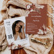 This elegant boho wedding invitation features two (2) beautiful Terracotta rustic pampas grass floral bouquets with the wording in a modern handwritten brush style calligraphy and a simple block font with a terracotta background and has an arch shape photo in a terracotta background . Moreover, you can add a QR Code to the back to direct your guests to RSVP your wedding event. This rustic terracotta colour floral is perfect for anyone planning a Boho, desert, fall autumn, or a rustic backyard wedding. It works well with other wedding themes too and definitely a great addition to your wedding. You can customise the invitation with your photo and QR code -- just replace it on the back with yours in the "personalise this template" box.