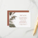 Modern and clean terracotta wedding guest information card with chic botanical design.