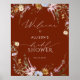 The design of the Terracotta Bridal Shower Welcome Poster is a breathtaking fusion of rustic charm and bohemian elegance. It captures the essence of a whimsical garden filled with wildflowers, creating a warm and inviting atmosphere for guests. The poster showcases a delightful array of hand-drawn wildflowers, meticulously rendered with rustic details. Each bloom, with its intricate petals and graceful stems, exudes a natural beauty that is both captivating and enchanting. This poster sets the tone for a bridal shower that is filled with whimsy, natural beauty, and joyous celebration. Most lettering is editable - click the "Customise Further" button to edit. Matching items in our store PrettyDesignHouse. Thank you!