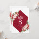 This table number card features an airy, classic layout with floral arrangements framing the top-left and bottom-right corners. The text is rendered in a rich burgundy, including a graceful script for "Table" and a bold, clear number for high visibility.
