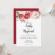 This Terracotta Burgundy Blush Floral Wedding Invitation features a romantic, hand-painted aesthetic perfect for an elegant celebration. The design is anchored by a lush arrangement of watercolor roses in deep crimson and soft blush tones that frame the top of the card.
