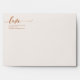 Romantic industrial terracotta / corriander / burnt orange / rust / copper and cream custom-printed invitation and card mailing envelopes with return address and rustic elegant calligraphy script "Love" with tail swashes. Entire template can be edited using the Zazzle designer to move anything or change colours and fonts to match your suite.