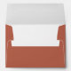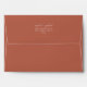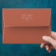 These modern minimalist wedding envelopes feature a contemporarty set of fonts in white for the sender address against a terracotta background.