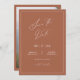 A minimal save the date card featuring modern calligraphy in a terracotta hue for the perfect way to announce your wedding.