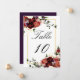 Flowers Terracotta Cream Burgundy Wedding Table Number Template. This Autumn Floral is simple yet elegant and is perfect for a stylish wedding. The neutral design features a minimalist card decorated with romantic Floral spray with a White background. Back is solid dark purple