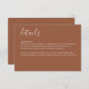 This modern terracotta wedding details card features a minimalistic design with an earthy, boho terracotta colour and clean, modern typography. A coordinating wedding suite is available.