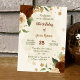 Beautiful earth tone fall birthday party invitations featuring terracotta, beige and cream flowers with green leaves .