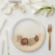 Beautiful earth tone fall wedding paper plate featuring terracotta and gold beige flowers with green leaves . The gold glitter details are simulated. FOR MORE MATCHING PRODUCTS click on the collection above or contact me