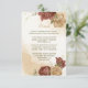 Beautiful earth tone fall wedding enclosure card featuring terracotta and gold beige flowers with green leaves . The gold glitter details are simulated.