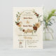 Beautiful earth tone fall wedding invitations featuring terracotta, beige and cream flowers with green leaves .