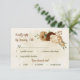 Beautiful earth tone fall wedding response card featuring terracotta, beige and cream flowers with green leaves .